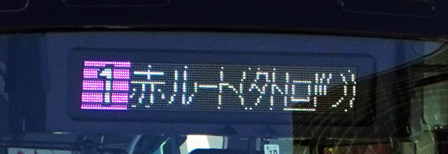 西条市街地循環バス「のんバス」。フルカラーLED行先表示機になっています。