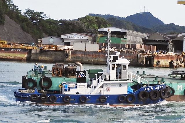 曳船の諸元は分かりません。台船MK102を曳航していました。台船・MK102 381トン、長さ35.00m、幅14.00m