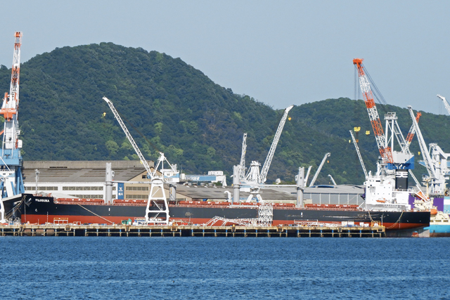 | 本船はフィリピン共和国の中部にあるセブ島にあるTSUNEISHI HEAVY INDUSTRIES (CEBU)工場で建造され、日本の常石造船本社まで曳航されてきたようです。日本で細部の仕上げをするのではないでしょうか。 神原汽船株式会社のファンネルマークになっていますので、運航は神原汽船だと思われます。この会社には2005年竣工の「富士須賀」という船がいますので、同じ名前の本船と入れ替わるのかもしれません。 |