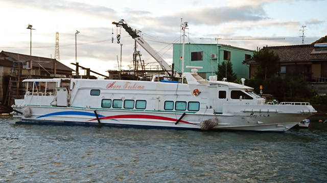 | ブルーバードとして四国汽船で活躍していた船を改造の上、2013年4月1日小豆島フェリー(現在の小豆島豊島フェリー) 宇野〜豊島(家浦)・豊島(唐櫃)〜小豆島(土庄)航路に就航。2016年、小豆島急行フェリーに移籍。以降は小豆島(土庄)〜直島・犬島臨時航路、予備船として高松〜小豆島(土庄)航路に就航していました。 諸元(大きさ・馬力)はブルーバードのデータですので、変更されているかもしれません。参考までにご覧ください。 【後日談】 長い間小豆島の造船所に係船されていましたが、後日ドック入りしその際航路表示が「宇野〜豊島〜土庄」に変わりました。 2017年の6月下旬から機関整備に入り、長い間ドックにて係留されたままでしたが、2018年2月16日より船名は変わらず、高速船「マーレてしま」として復旧しました。 情報提供:フェリーあずき様 その後2020年7月あたりから土渕海峡付近に係留されたままになったようです。 情報提供:さんおりんぴあ様 2022年5月撮影時には航路名が「直島〜土庄〜犬島」となっていましたが、撮影は土庄港です。 情報提供:kieth様 |