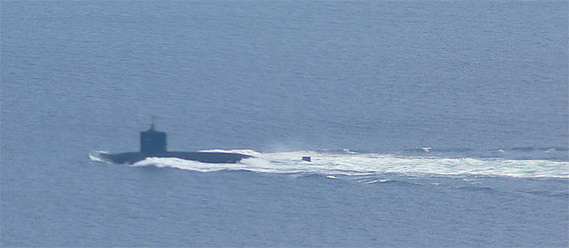 宮島の山の上から海を眺めていたら何やら不思議な形の船が見えました。よく見るとそれは潜水艦ではありませんか! 自衛隊呉基地の潜水艦だと思います。潜水艦の浮上航行なんて初めて見ました。滅多に見られる姿ではありませんよね。