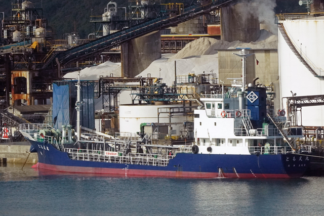 | 辰巳商会が運航するケミカルタンカー「ともえ丸」です。苛性ソーダなどのケミカルを運びます。 |